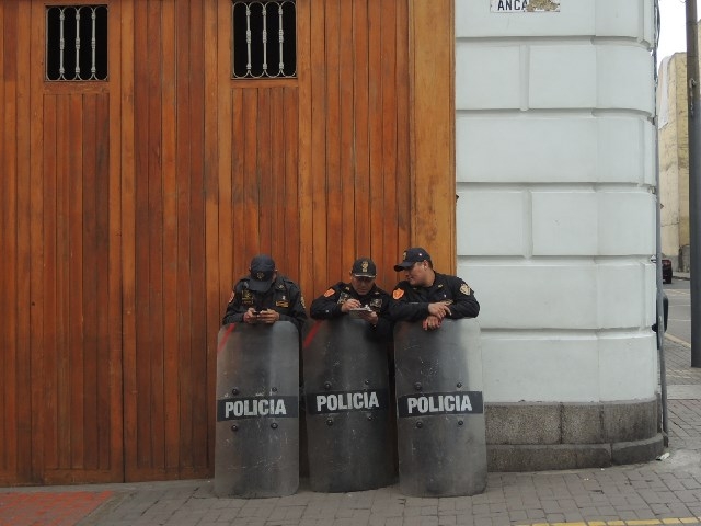 Arrivés à Lima, les premières images de l’Amérique latine commencent à défiler sous nos yeux depuis la banquette arrière de notre taxi. Dans la rue, contrairement à l’Asie aucun deux roues, uniquement des colectivos (mini bus pour locaux) et des taxis. Par contre comme en Asie la street food est partout le long de la route, l’occasion de finir en beauté cette interminable journée par une dégustation d’anticuchos (brochettes de cœur de bœuf), la spécialité locale. Le lendemain, décalage horaire oblige, nous serons debout dès 6h, direction le centre ville de Lima à 45 minutes en colectivo. A l’intérieur salsa et reggaeton résonnent déjà dans le transistor, cette fois c’est sûr l’Asie et ses Karaokés sont loin derrière nous. Boycottée par la plupart des touristes, la ville de Lima a finalement bien plus à offrir qu’on ne le croit, à commencer par la gastronomie la plus remarquable de tout le continent : Ceviche (tartare de poissons), papa (pomme de terre) a la huancaina, papas rellenas, anticuchos, humitas, tamales… bref tous ceux qui connaissent un minimum Emilie savent que nous n’avons rien négligé de la gastronomie locale. Pour ce qui est de la ville en elle-même, Lima de part sa situation géographique le long du Pacifique, est accrochée aux nuages la moitié de l’année ce qui lui confère une atmosphère quelque peu morose. La grisaille de la capitale est néanmoins contrastée par les couleurs vives des bâtisses coloniales parfaitement préservées. Si Lima est encore délaissée par bon nombre de touristes c’est aussi qu’elle a la réputation d’une ville dangereuse. En réalité la ville n’est plus aussi risquée que par le passé, époque à laquelle les touristes se faisaient régulièrement détroussés à la vue de tous ! Au final il suffit de respecter quelques règles élémentaires à l’heure de grimper dans un taxi ou de choisir une compagnie de bus ; et surtout ne jamais quitter son sac des yeux ne serait-ce qu’une demi-seconde (comme à Paris en somme), sans quoi il y a fort à parier que vous finirez par apparaître dans l’une des nombreuses émissions télé relatant les faits divers de la capitale et dont les images passent en boucle dans chacun des terminaux de bus ! A Lima nous ferons la connaissance de 4 argentins avec lesquels nous partagerons un dortoir. Après une mise en jambe pleine d’incompréhensions :