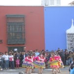 Première visite de la ville de Trujillo, sur la Plaza de Armas (équivalent des Plaza Mayor espagnols), les bâtisses coloniales jaunes, bleues et rouges toutes ornées de blanc sont superbes. En plus, c’est notre jour de chance, aujourd’hui 28 juillet le Pérou célèbre son indépendance, il y a 92 ans tout juste le pays se défaisait du joug espagnol ; résultat défilés, danses et costumes, un véritable medley de toutes les cultures qui définissent aujourd’hui le pays. Le maire de la ville harangue la foule par des « que viva el Peru, Peru te quiero, orgulloso por ser peruano » (vive le Pérou, Pérou je t’aime et je suis fier d’être péruvien). Arrivés sur le tard nous sommes un peu loin des premiers rangs, pour autant Emilie n’en manquera pas une goutte, et pour cause les péruviens sont particulièrement proches du sol ! Emilie est plus grande que les ¾ de la population, conséquence même au 10ème rang nous sommes toujours bien placés. Dans la foule devant nous des grand mères s’en prennent verbalement à des agents de police placés devant elles, les empêchant de profiter pleinement du spectacle. Encore un autre contraste avec l’Asie où l’autorité ne semblait que très rarement remise en cause. Ici personne ne se retient à l’heure d’exprimer le fond de sa pensée, même face à l’autorité.